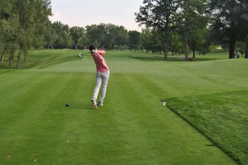 I arrived at Cherry Hills Country Club just as the club was opening. I made my way to the men’s locker room to change my shoes. I then headed to the practice range to warm up. My golf balls continued to have a little extra distance, but not as much as they had the day before at higher altitude near Vail. After warming up, I met my playing partner for the day, Jacob. A friend Jeff had requested that John Ogden, the head pro at Cherry Hills host me at the course. I very much appreciated Jeff making the request and John agreeing to host me. John had arranged for me to play with Jacob who was working as a summer intern at Cherry Hills.
