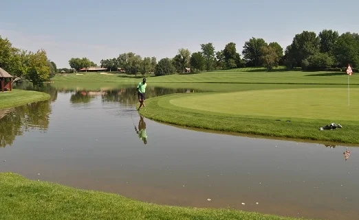 Trying to take a little off my approach shot over water on the par five 17th hole.