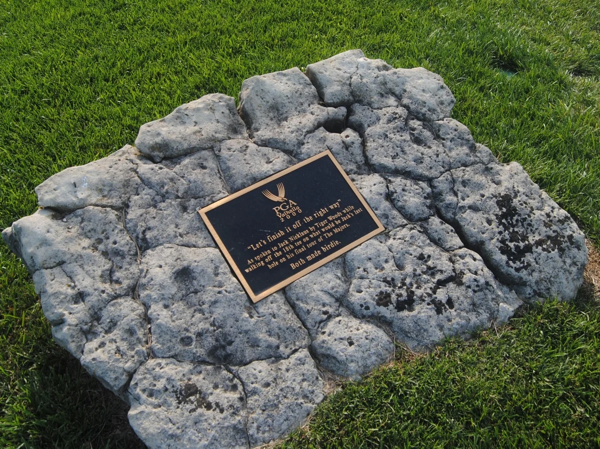 As we approached the tee box for the short par 5, 18th hole (470 yards), the caddies pointed out a plaque. The plague contained a quote from Tiger Woods to Jack Nicklaus as Jack was about to miss the cut in his final major. Tiger said, “let’s finish it off the right way.” They both went on to birdie the hole.