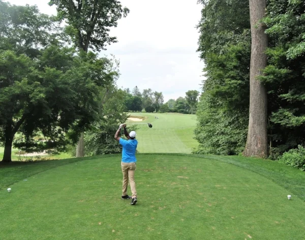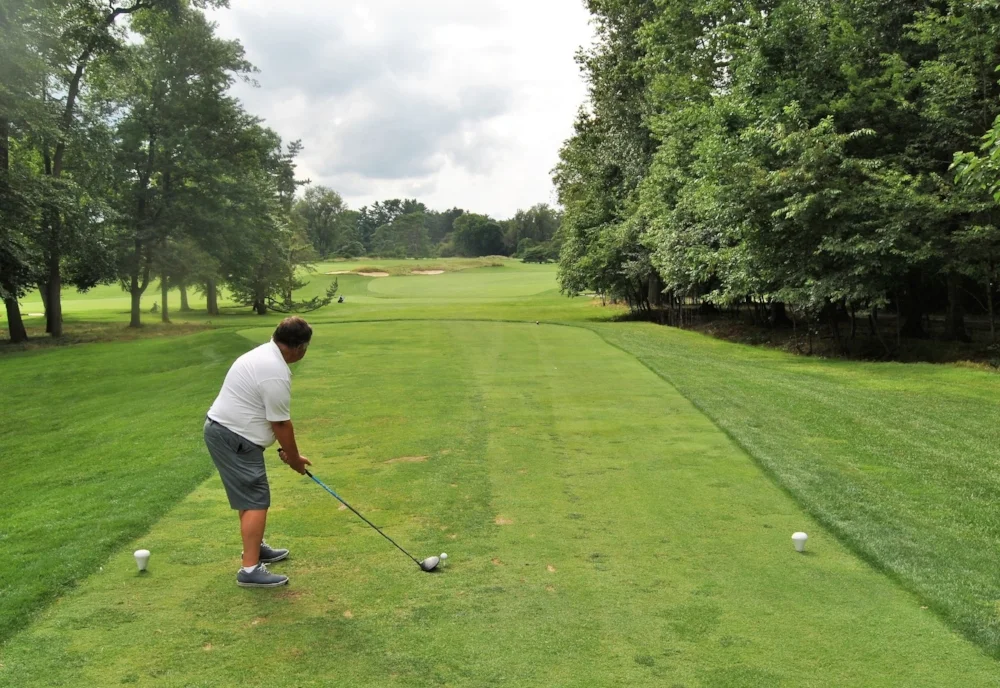 Malcolmn and I chatted over a light lunch on the veranda and watched as groups teed off. Following lunch, we were joined by Jim Maxim and Jim Brown. No not the famous running back, just another of the three Jim’s that would tee off with Malcomn on this nice sunny afternoon in suburban Philadelphia. We all converged at the practice range to warm up for our round. Following our warm up, it was our time to be watched as others dined on the veranda. I felt almost as much pressure to hit a good tee shot as I did when I was preparing to hit my first drive at Augusta National.