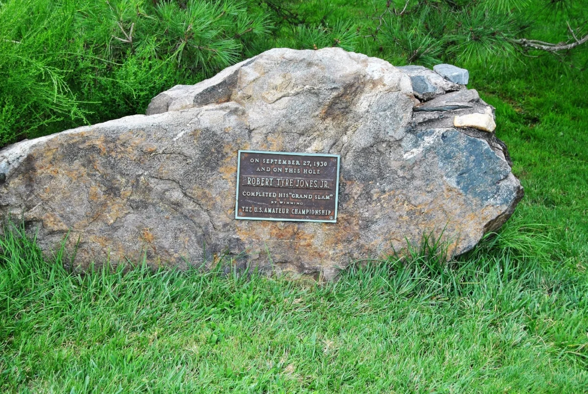 On the walk from the 10th green on the Merion East Course to the 11th hole tee box there is a rock with a plaque that commemorates Bobby Jones' completion of the Grand Slam. It was on the 11th hole in 1930 that he won the U.S. Amateur Championship to complete the feat. Malcomn took this moment to tell me of another tradition at Merion related to this achievement by Bobby Jones. Each year, on September 30th, after a tournament hosted by the club, the members adorn tuxedos and walk across Ardmore Avenue to the rock and toast Bobby Jones and his achievement of the Grand Slam on the 11th hole.