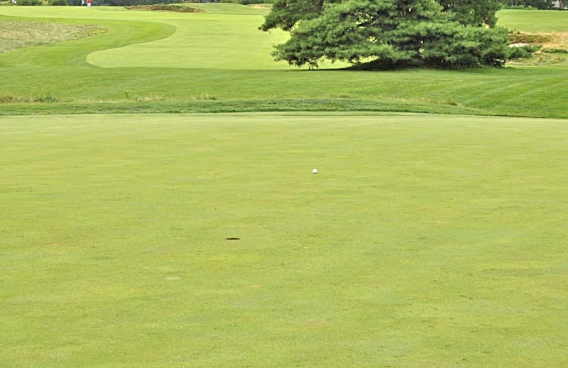 The par 5 second hole. Ardmore Avenue is along the right side of the fairway.